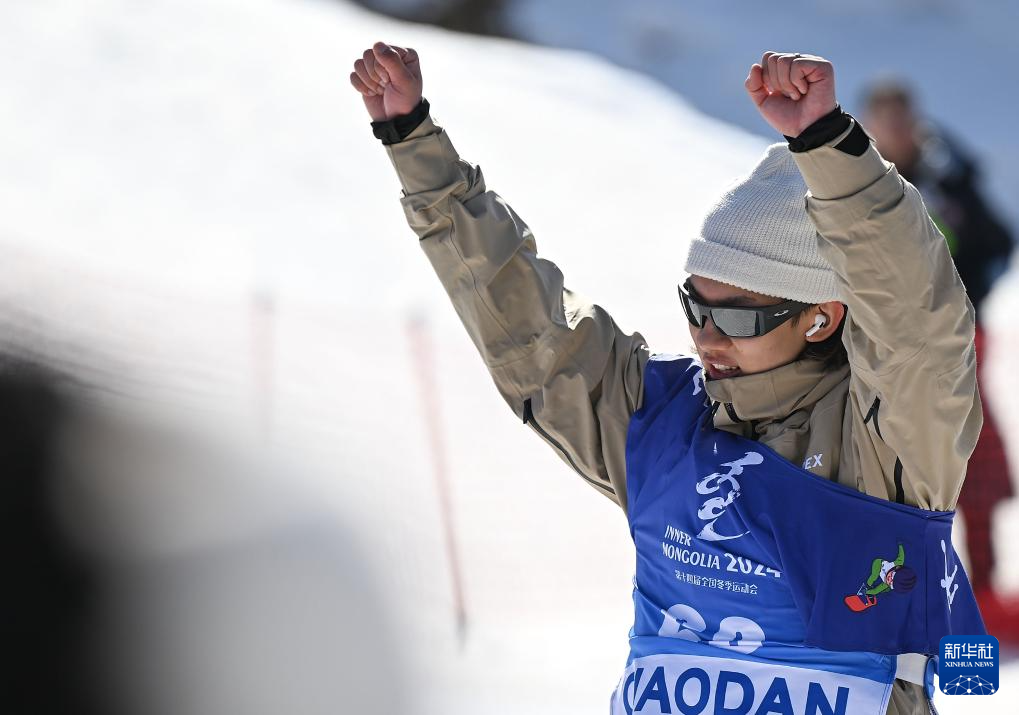 2月24日,山西队选手苏翊鸣在比赛中庆祝。