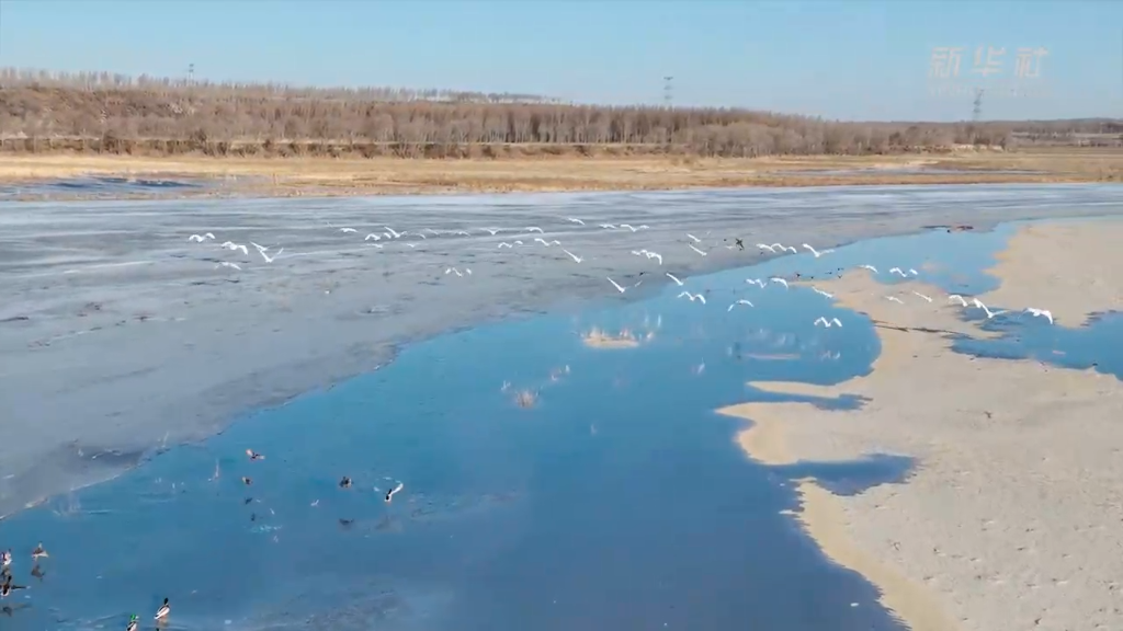 随着气温转暖,近日在内蒙古库伦旗下勿兰胡绍嘎查水域,北迁候鸟在未完全消融的冰面上自由嬉戏,构成了一幅优美的生态画卷。