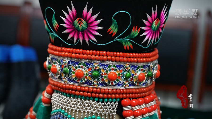 鄂尔多斯蒙古族头饰造型华美,工艺精湛,是当地姑娘出嫁时最华丽的装饰。其制作技艺是蒙古族传统手工艺之一,具有独特的艺术风格和民族特色。