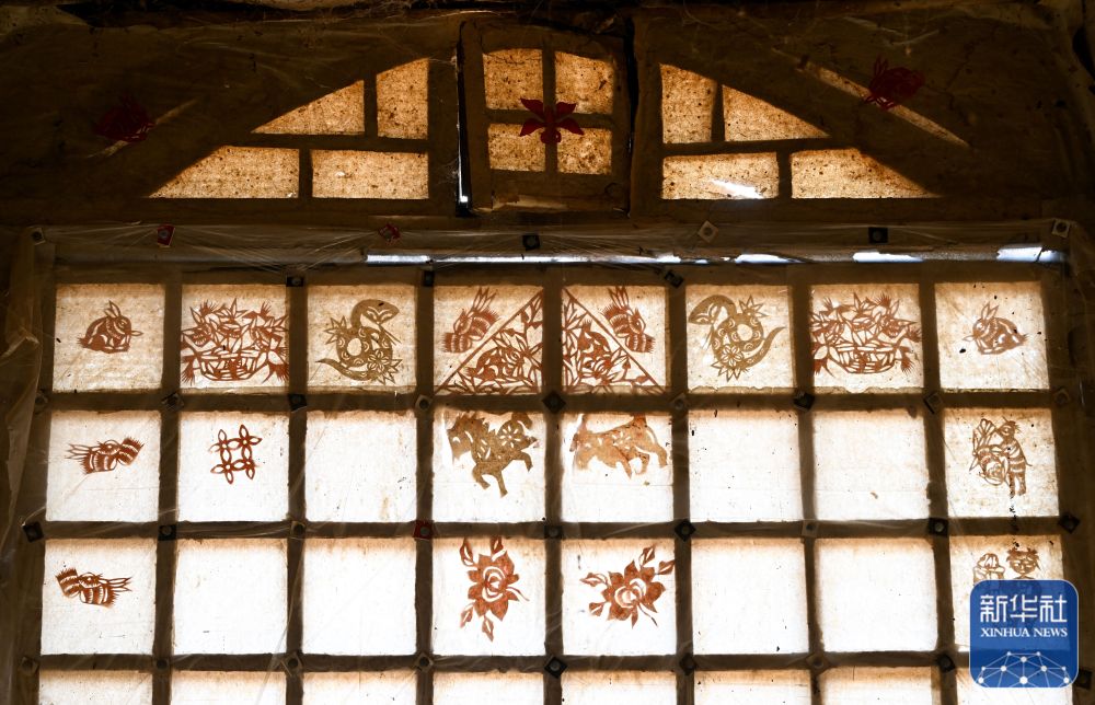↑这是在内蒙古呼和浩特市和林格尔县羊群沟乡梁巧连故居中拍摄的传统窗框和剪纸(3月15日摄)。新华社记者贝赫摄