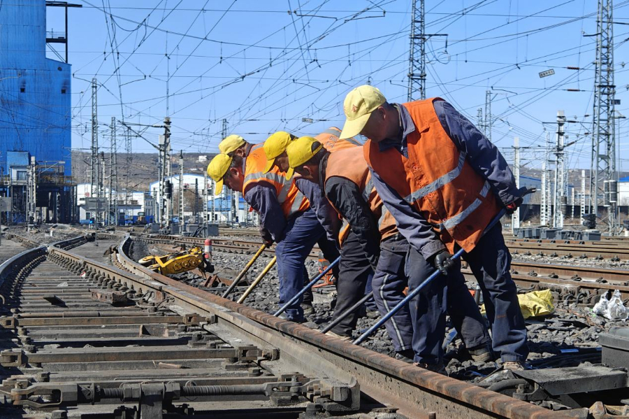 线路工刘永宽是几个人当中身材最魁梧的。只见他双腿微曲,扎稳马步,双手稳稳扶着直捣机,突突突地松解道床下板结的石砟。直捣机的马达震得他手麻脸颤,但他依然倒提一口气,紧紧握着机械把手,保持腰部发力,控制直捣机精准捣固。他的搭档郝聪明默契配合,随着石砟的松解,用铁锹把石砟铲出道床,而其他工友在线路外用钢叉一边进行简单清筛,一边整理道床。这是他们多年来养成的默契,也是在日常作业中形成的标准化作业习惯。