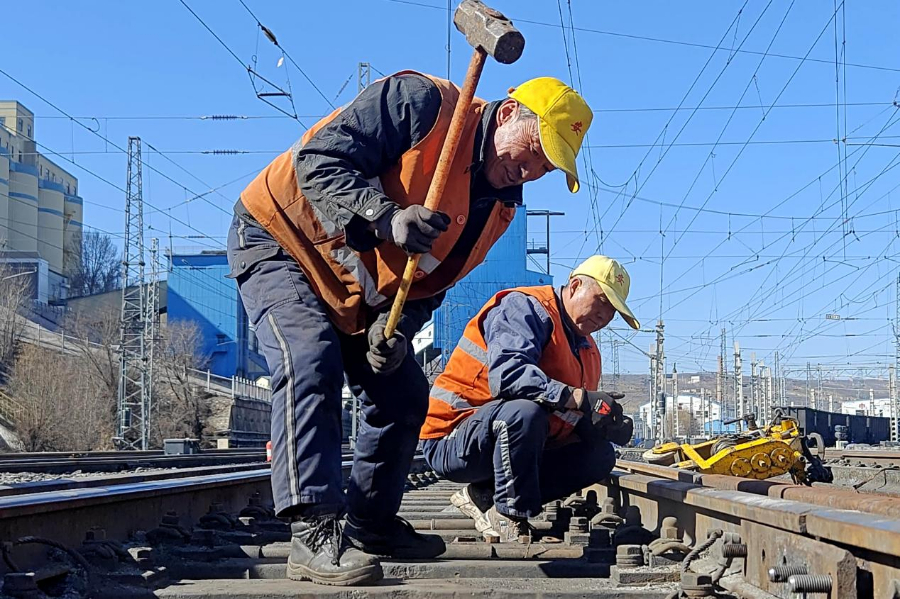 春风送暖,送来了冰消雪融、草木蔓发,也带来了冻害回落、路基下沉、翻浆冒泥等铁路季节性病害和隐患。在装车筒仓附近,一根Ⅲ型轨枕受春融影响发生伤损,点岱沟线桥工区工长李忠国正带领着8名线路工对伤损轨枕进行更换作业。