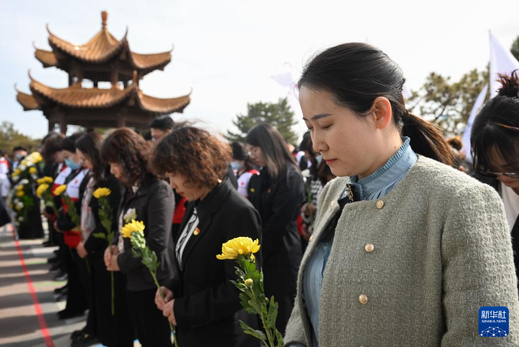 4月2日,在内蒙古生命礼赞园,人们在为遗体和人体器官捐献者肃立默哀。新华社记者 贝赫 摄
