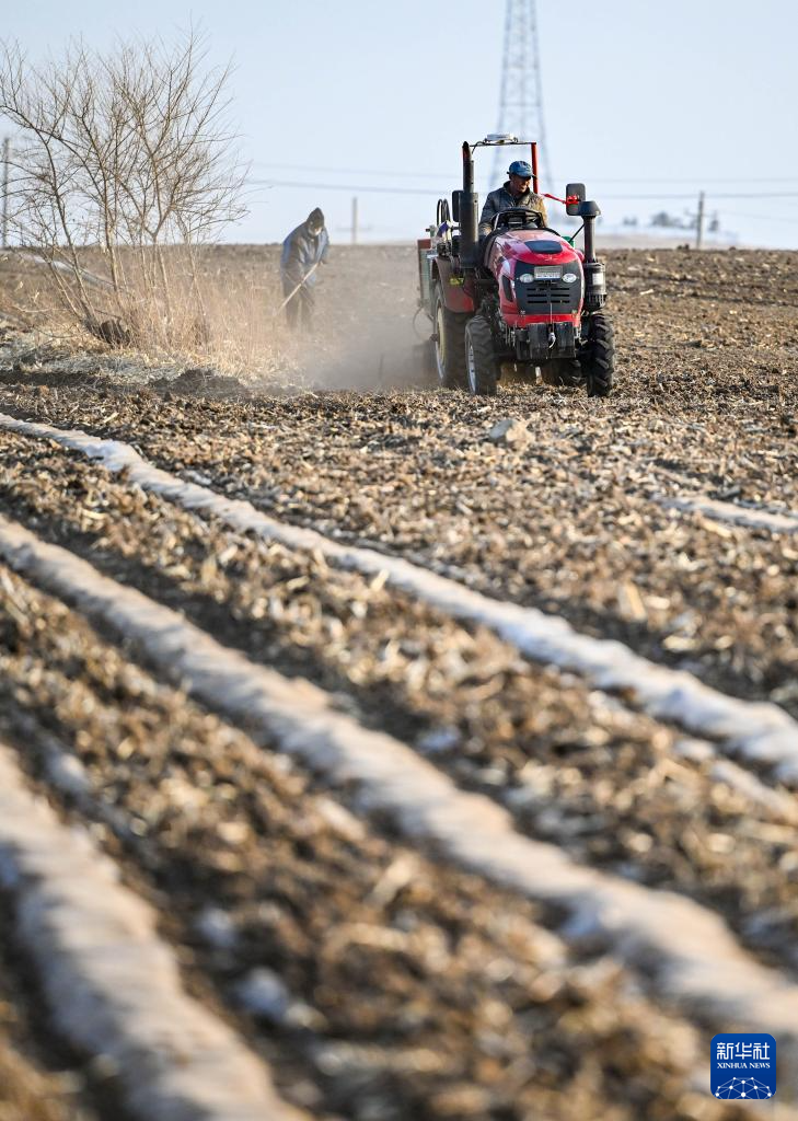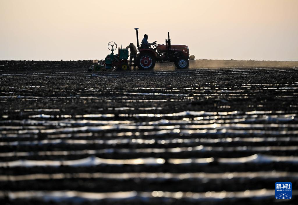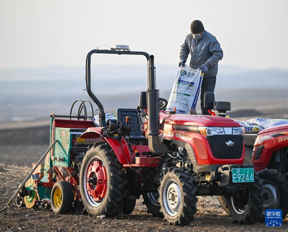 4月9日,农户驾驶拖拉机在内蒙古兴安盟科尔沁右翼前旗的万亩玉米连片种植区中播种玉米。