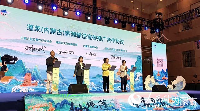 推介会现场,蓬莱区文旅局与内蒙古各协会签署蓬莱(内蒙古)客源输送宣传推广合作协议;蓬莱区旅行社协会与呼和浩特市旅游协会签署蓬莱湾景区联票推广合作协议,为蓬莱和内蒙古提供更为广阔的合作空间,加深了两地之间的交流互通。