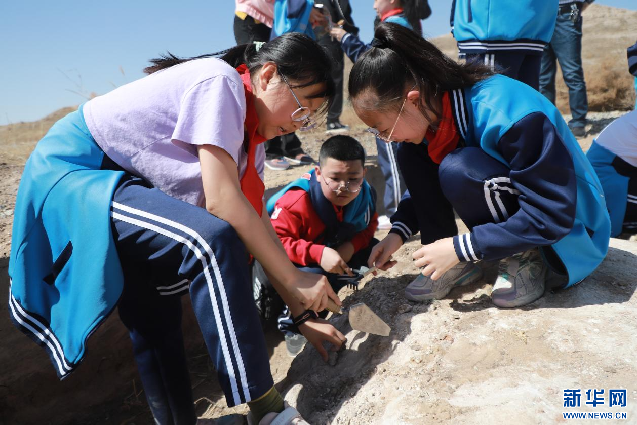 4月18日,内蒙古自治区赤峰市巴林左旗林东第二小学学生在辽上京遗址进行考古发掘。新华网发(宋瑞欣 摄)