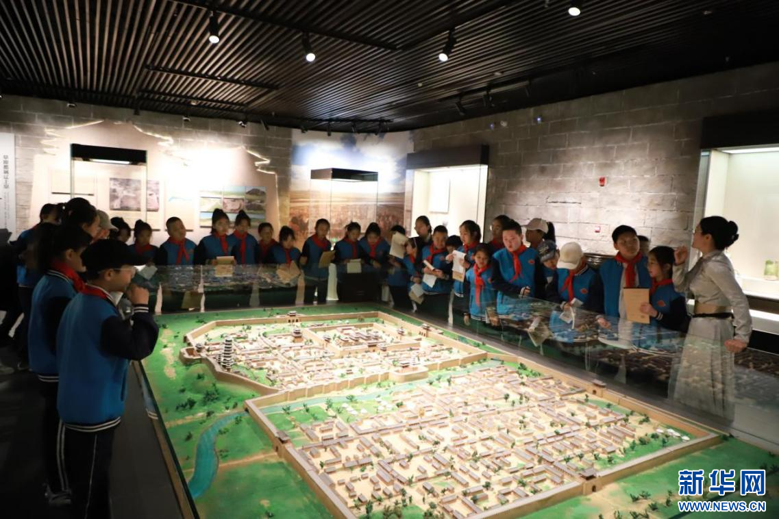 4月18日,内蒙古自治区赤峰市巴林左旗林东第二小学学生在辽上京博物馆参观学习。新华网发(宋瑞欣 摄)