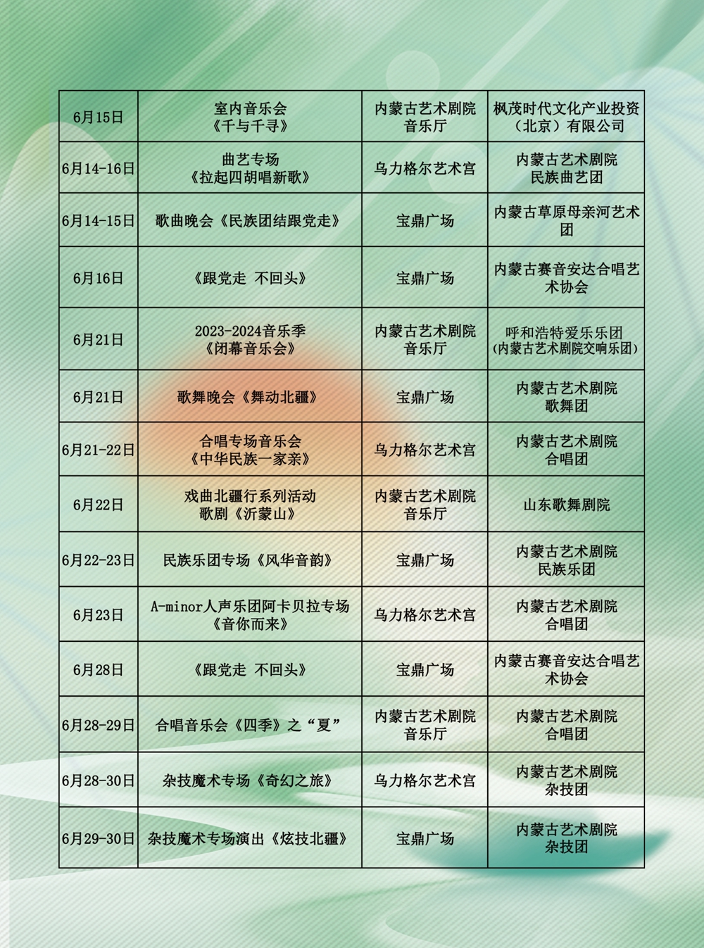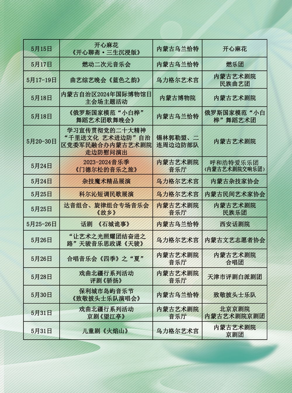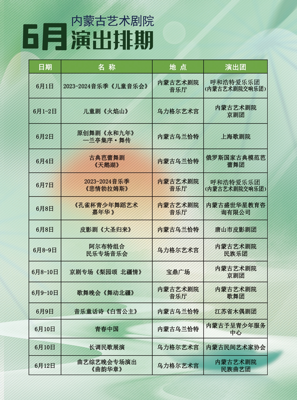以下附图:内蒙古艺术剧院5月、6月演出排期