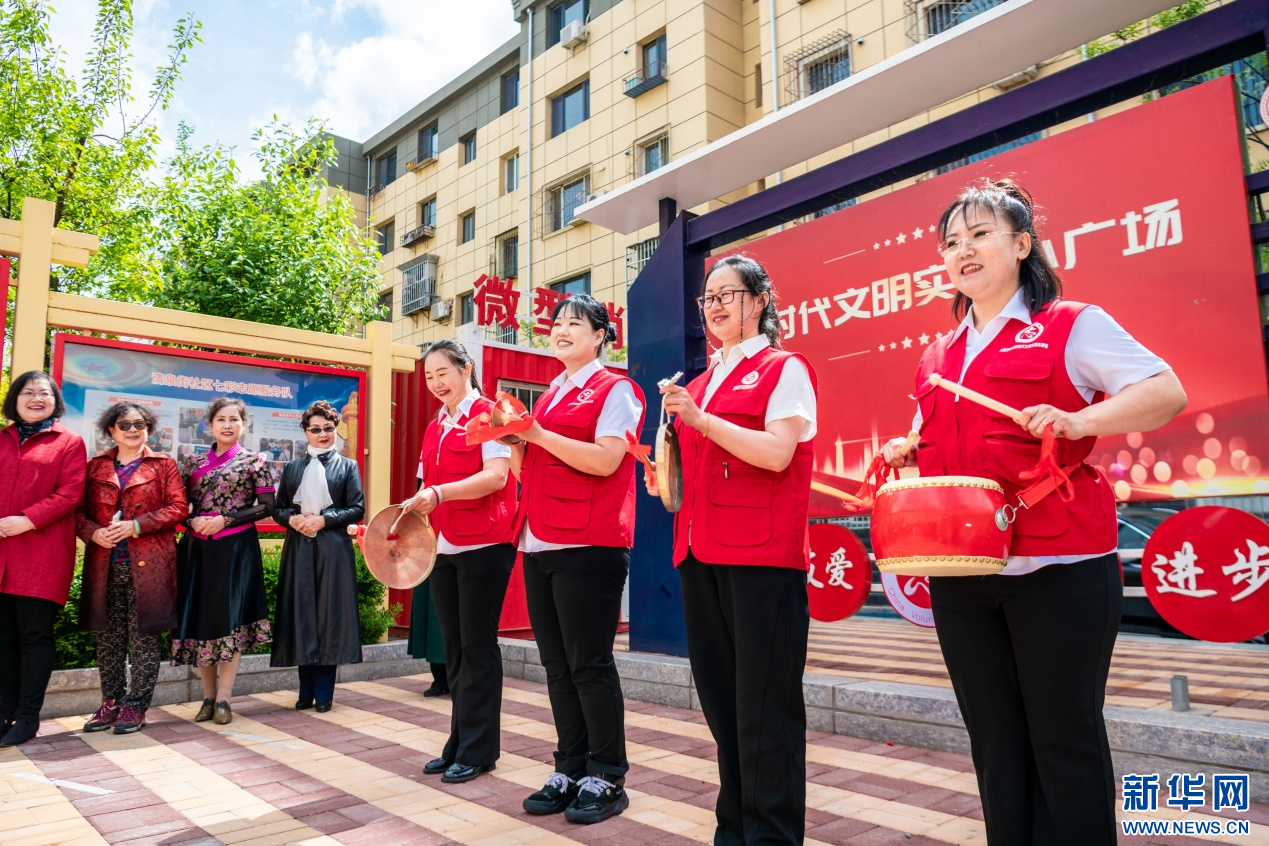 4月29日,呼和浩特市玉泉区清泉街社区的文艺志愿者在表演文艺节目。新华网发(丁根厚 摄)
