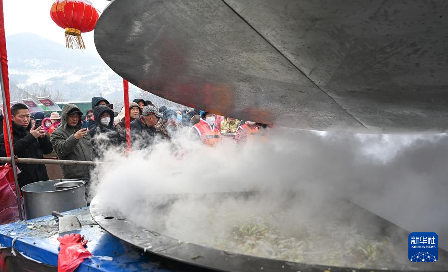 2023年12月30日,在卓资县林胡古塞景区拍摄的杀猪菜。新华社记者 贝赫 摄