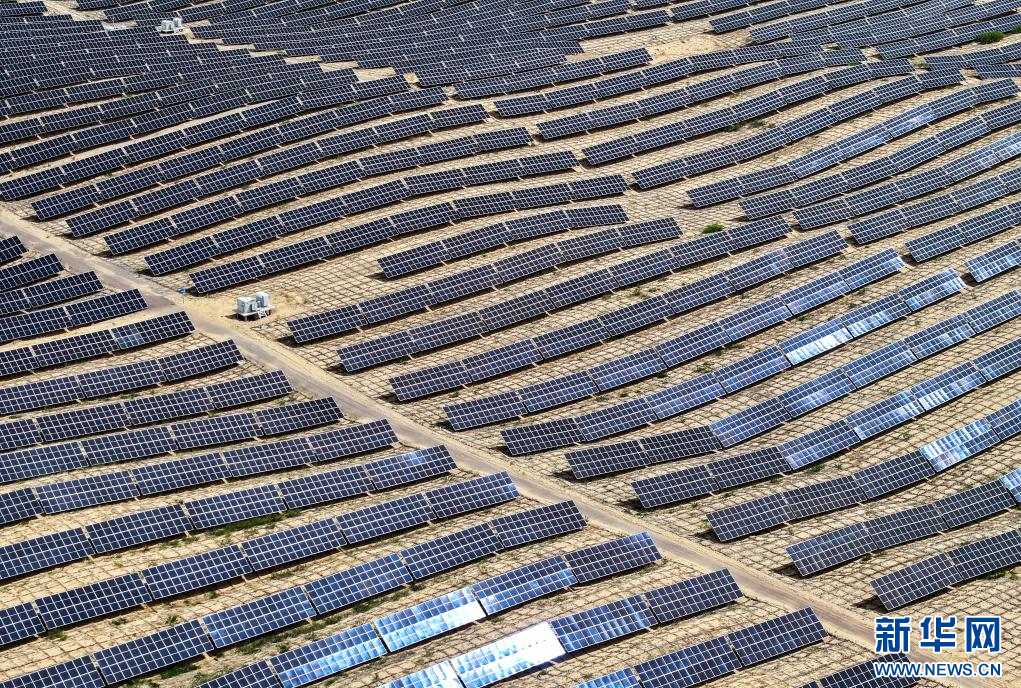 这是在赤峰市敖汉旗敖润苏莫苏木沙地上建起的光伏发电项目(无人机照片,5月16日摄)。新华社记者 连振 摄