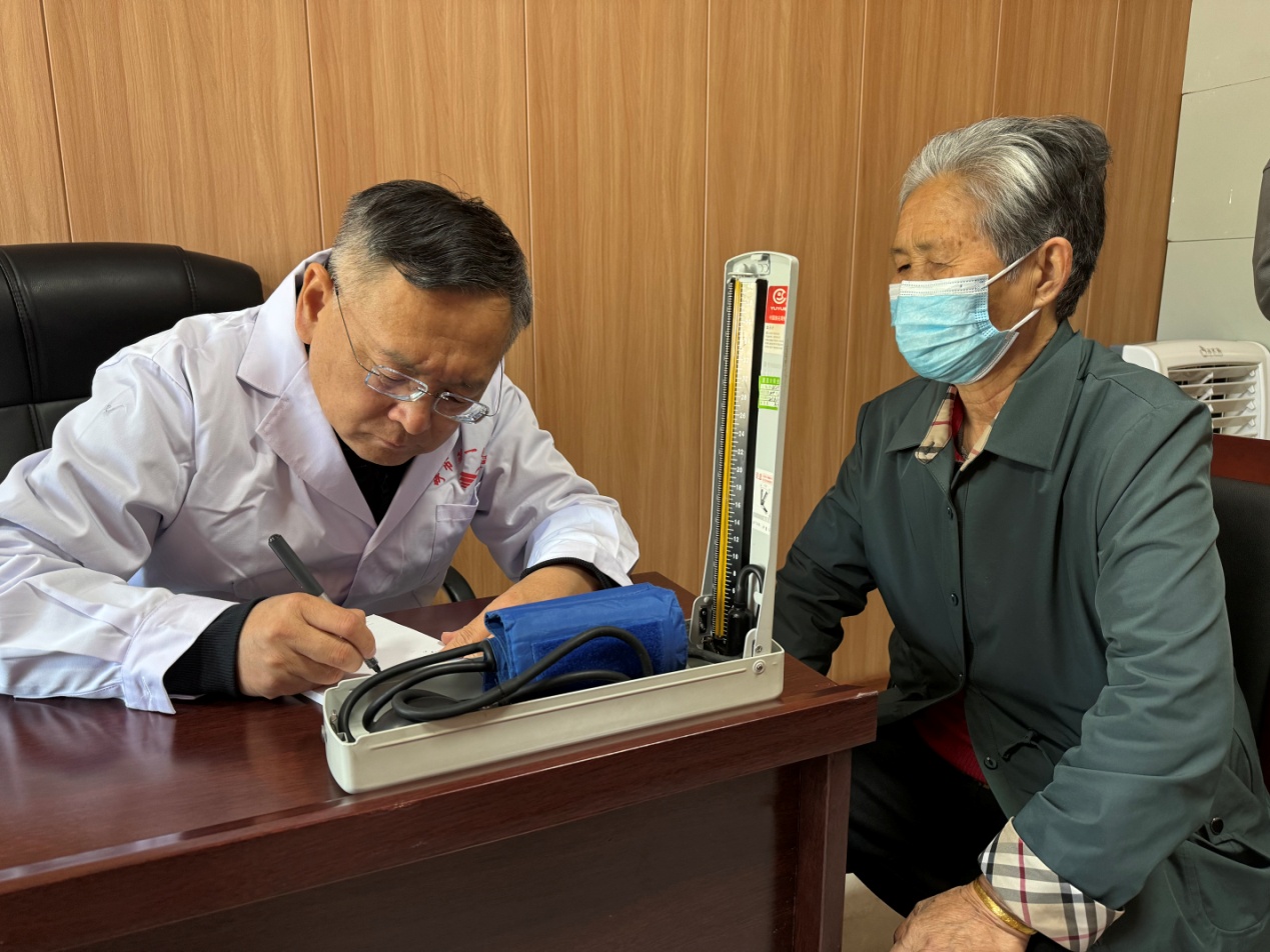 呼和浩特市第一医院全科医学科主任赵海渊为居民进行义诊。
