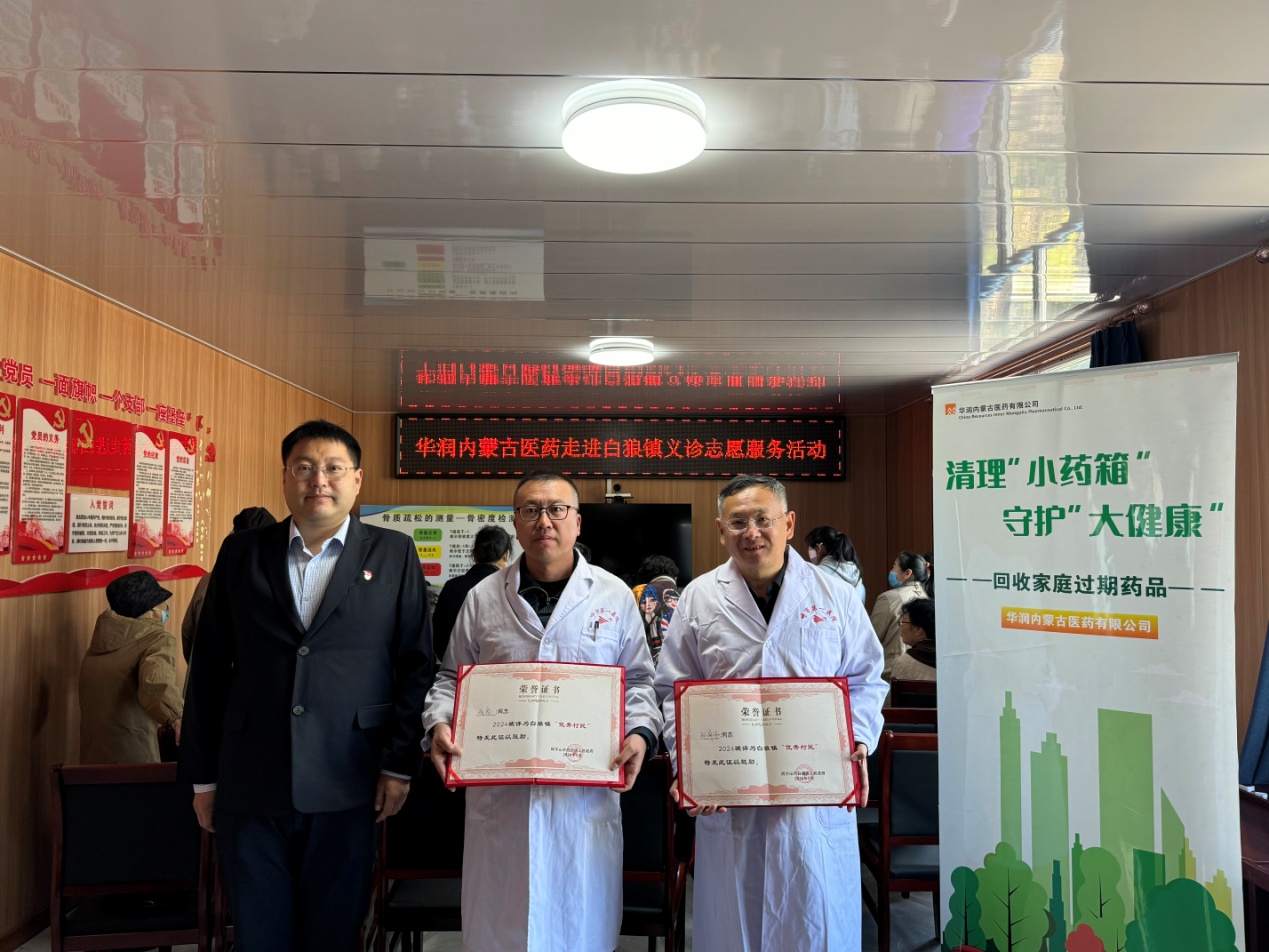 白狼镇为呼和浩特市第一医院专家颁发“优秀村民”证书。