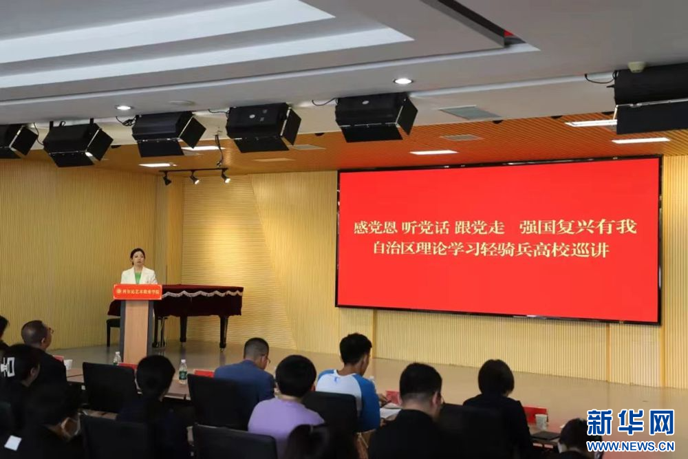 5月31日,“‘感党恩、听党话、跟党走’强国复兴有我”高校巡讲第3小分队走进科尔沁艺术职业学院,为广大师生进行主题宣讲。新华网 发
