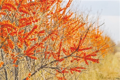 鄂尔多斯市达拉特旗白土梁林场无刺大果沙棘丰收。