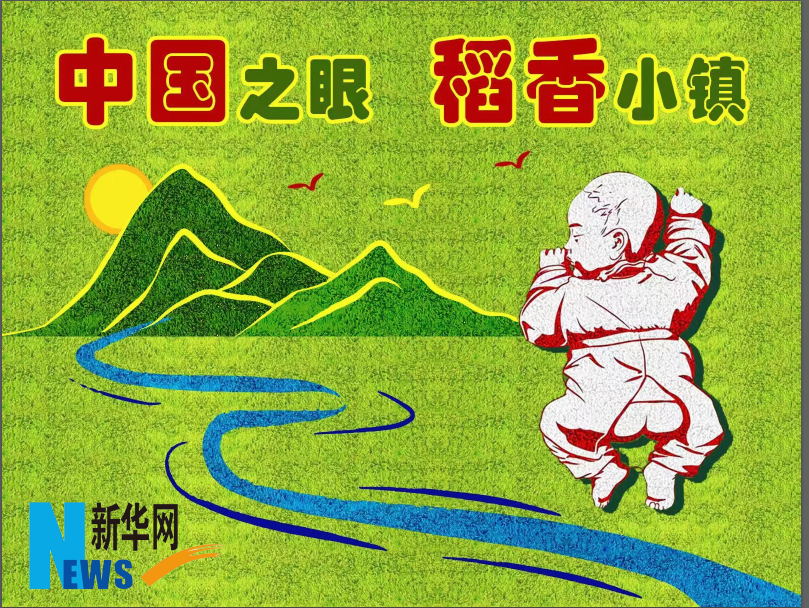 稻田画制作人员正在稻田里放线。新华网发