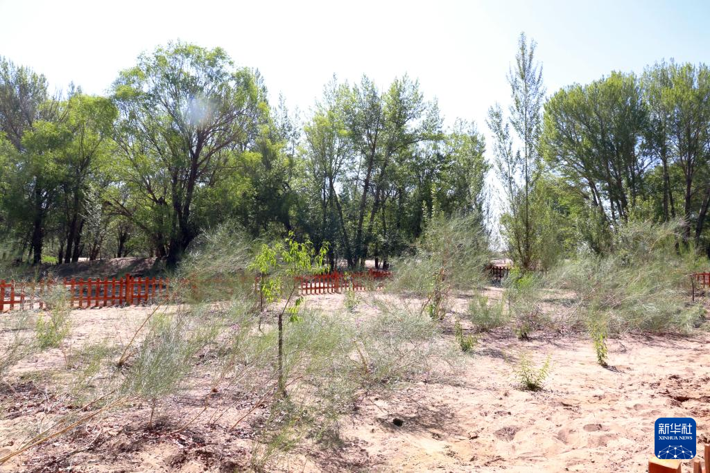 杜文化告诉记者,经过几代人的艰辛付出,林场逐渐摸索出以林挡沙、以草固沙、林草叠加综合治理的模式,将人工造林与封禁管理相结合,初步形成“网、带、片”与“乔、灌、草”相结合的沙地治理格局。林场还总结出荒漠原生树种造林、冷藏苗避风造林、高压水打孔造林等技术,形成防风、固沙、锁边等一整套综合治沙的“好法子”。