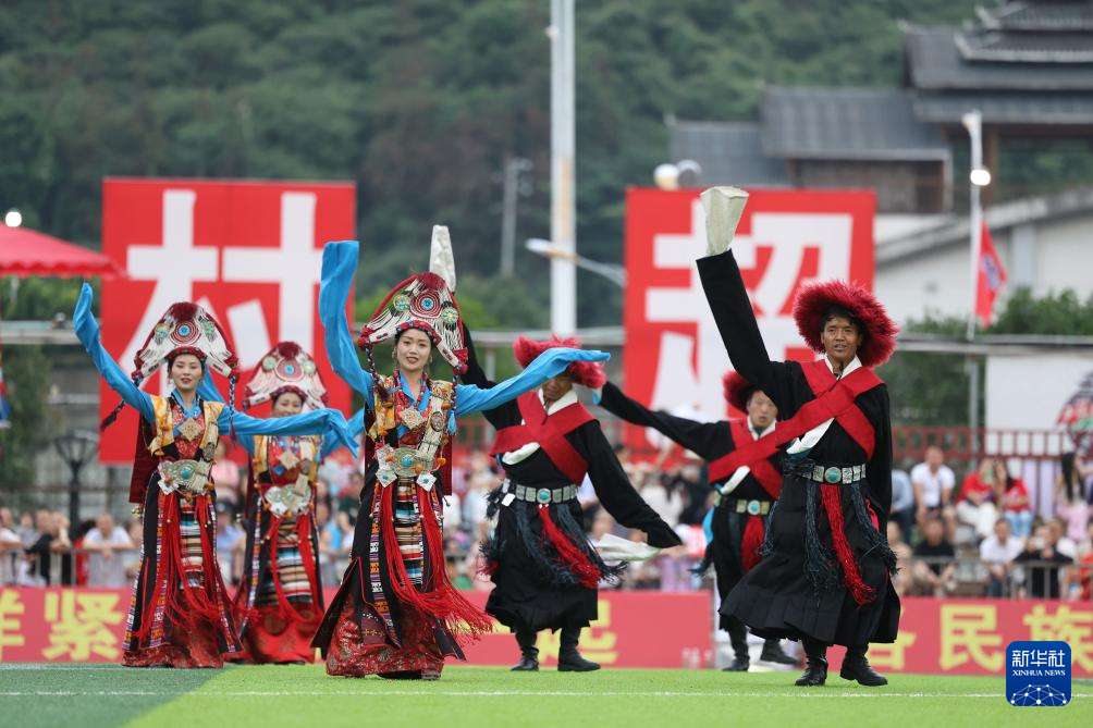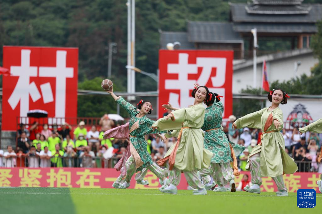 除了球场上的精彩对决,各地啦啦队带来的精彩演出同样令现场观众惊叹。“我印象最深刻的节目是萨迦索舞,给我一种很有能量、非常阳刚的感觉。”来自广西桂林的游客胡必乐说,他从网上得知端午节当天有“村超”比赛后,决定带家人来现场感受一下。