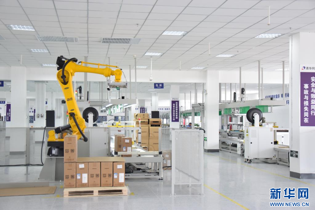 内蒙古同方科技全自动服务器生产线正在生产。新华网发