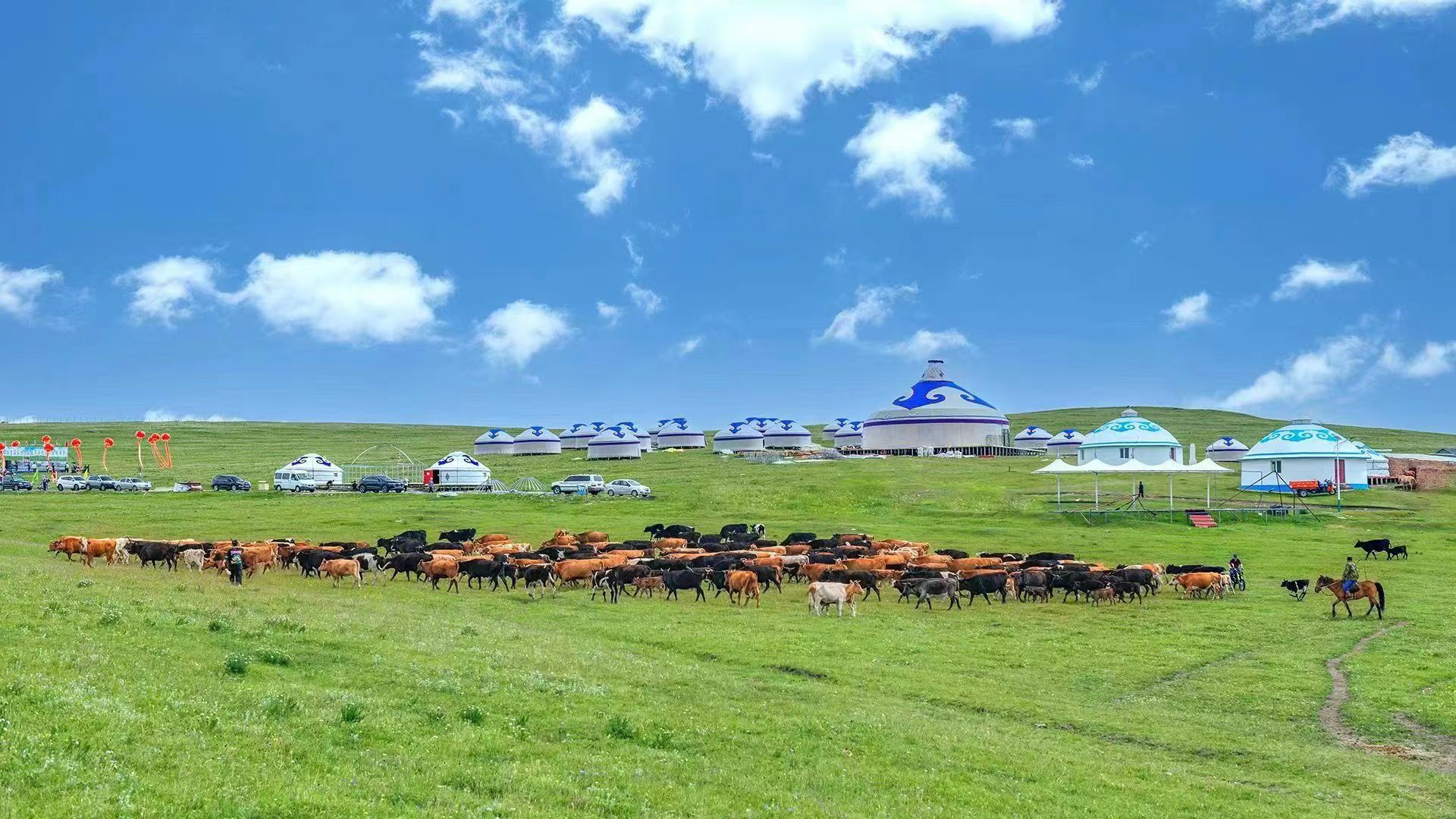 本次敖包旅游节为期一周,期间将举办一系列精彩纷呈的文化体验活动。游客们可以参与传统的敖包祭祀仪式,亲手系上五彩经幡,祈求家人幸福安康,还能观看民族歌舞表演、万马奔腾、牦牛赛,参与到骑马射箭、蒙古族服饰秀、拔河等互动环节,亲身体验草原生活的乐趣与智慧。除以之外,现场还有直径4.5米大锅炖牦牛肉、烤全羊、奶茶、酸奶、手抓肉等传统美食,让游客在品尝地道风味的同时,感受草原人民的热情好客。本届旅游节还特别设置亲子互动节目,诸如草原寻宝、水上摩托、星空帐篷露营等,让游客在游玩过程中增进亲子感情。
