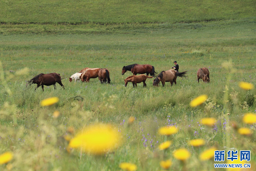 夏日的内蒙古兴安盟科右前旗乌兰毛都草原充满生机和活力,微风吹过,草丛随风摇曳,野花点缀其中,五颜六色,如同一幅绚丽的画卷。新华网发(德志纯 摄)