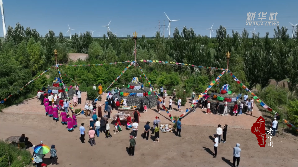 在内蒙古地区,敖包祭祀不仅是对自然的敬畏与感恩,也是乡村凝聚力的展现。在内蒙古自治区通辽市科尔沁左翼中旗代力吉镇,农牧民们伴随着盛夏的朝阳,带着果盘、肉和奶制品等祭品,成群结队来到当地的敖包举行盛大的祭祀活动。