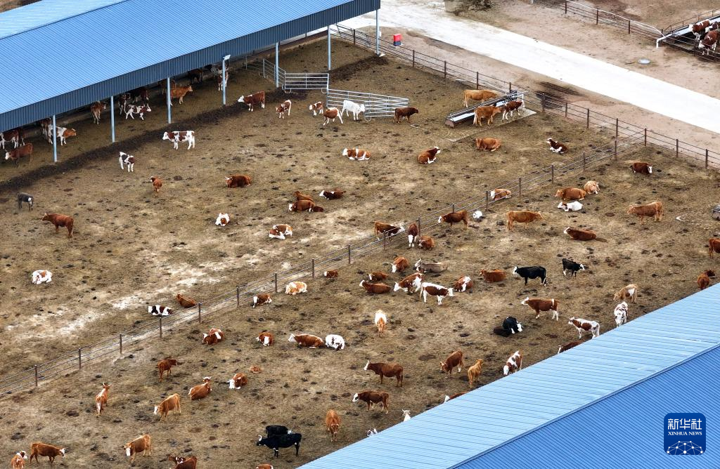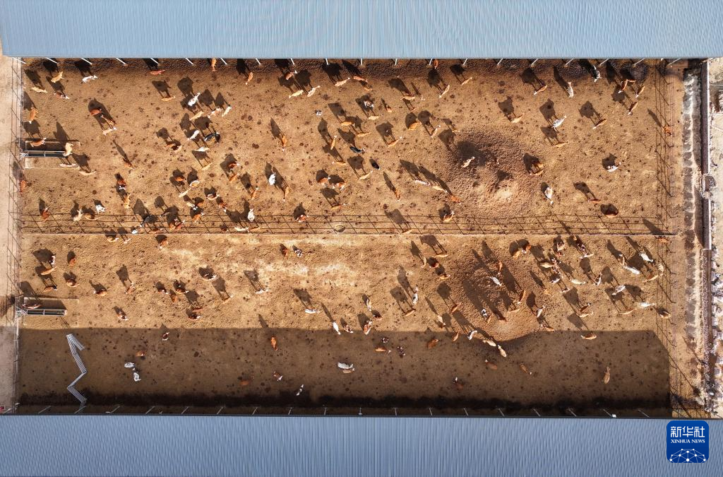 6月23日拍摄的内蒙古锡林郭勒盟苏尼特左旗澳仑牧业有限公司托管代养的肉牛(无人机照片)。新华社记者 贝赫 摄