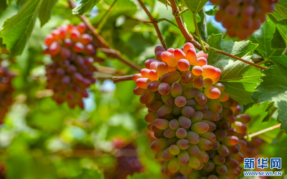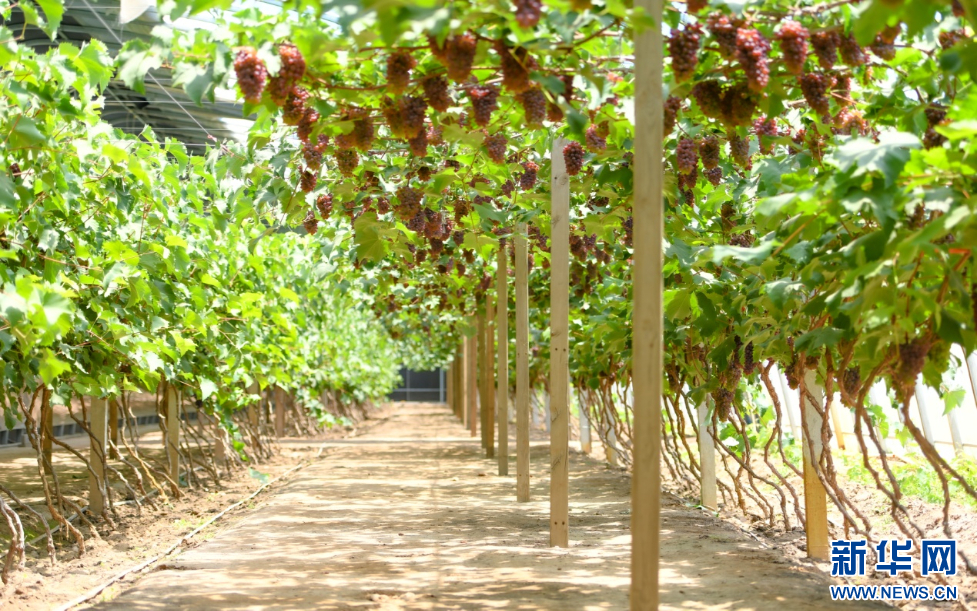 6月26日,土默特左旗一家葡萄采摘园内的葡萄长势喜人。新华网发(杨鑫 摄)