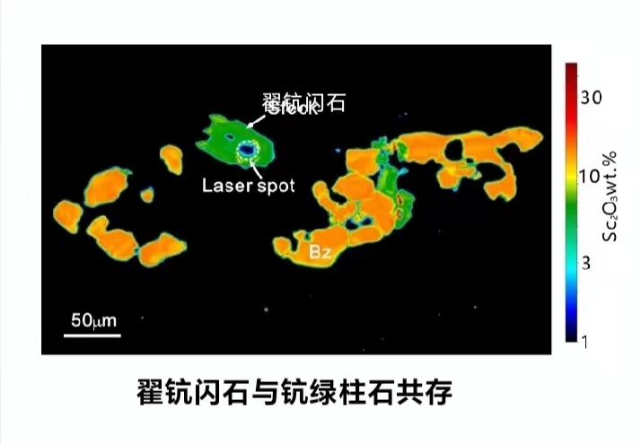 铌、钪是白云鄂博矿床重要的伴生金属矿产资源,但此前研究程度较低,一直未被开发利用。2021年开始,中国科学院地质与地球物理研究所研究员范宏瑞研究团队,依托中国科学院院士李献华包钢工作站和相关科研项目,在白云鄂博开展系统的矿物学研究过程中,发现了两种化学成份“异常”的矿物,即鄂博铌矿和翟钪闪石,并明确了它们的赋存状态和矿物共生组合等情况。