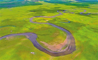 具有“天下第一曲水”之称的莫尔格勒河迂回曲折,仿佛一条丝带飘落在呼伦贝尔大草原上。