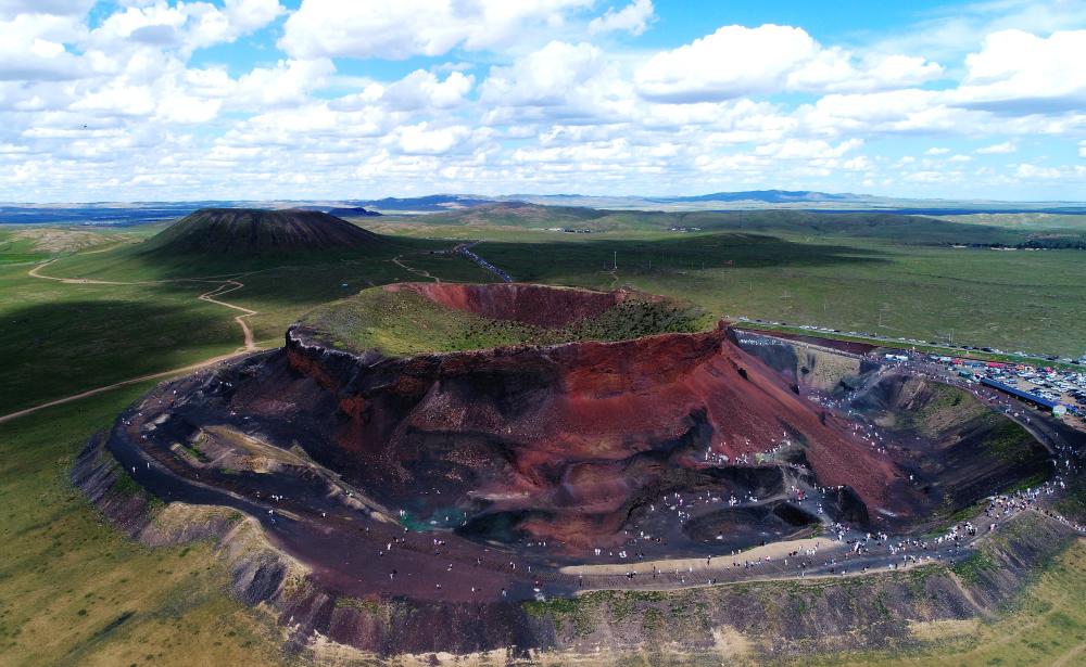 乌兰哈达火山群位于内蒙古自治区乌兰察布市,由30余座大小不一的火山组成,分布面积约280平方公里。盛夏时节,众多游客前来避暑纳凉,打卡拍照。