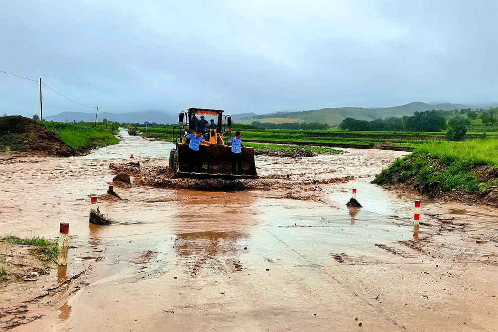 由于被困者无法准确描述车辆的具体位置,民警只能沿着五毛线公路进行搜索。此路线过水路面众多,且因持续降雨导致水量增大,给搜索工作带来极大困难。人命关天,刻不容缓,傅晓东迅速与沿途的苦力吐村和毛山东村两村的村委会取得联系,请求协助搜寻,并准备铲车等救援车辆随时待命。两村闻讯立即出动三台铲车和一辆皮卡前来支援。在民警到达第一个过水路面时,由于水流湍急,警车无法通过,民警见状立即分头行动,一路人乘坐后方紧随而来的铲车,一路人则继续驾驶警车迅速绕路,火速赶往现场。