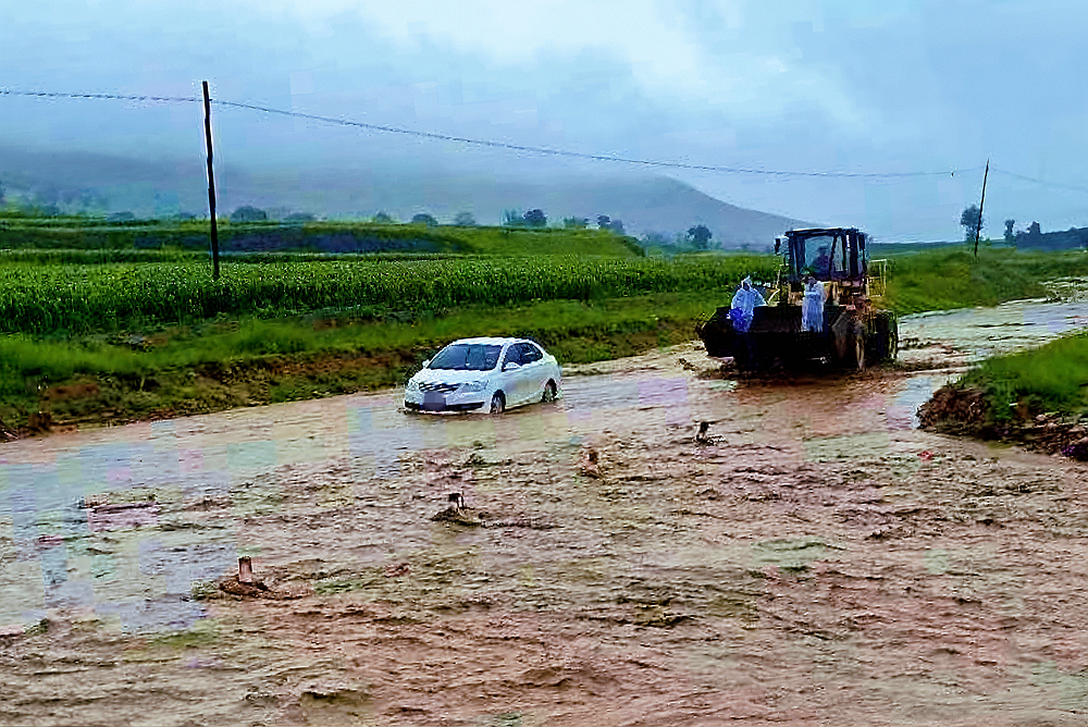 此时,还有一名司机被困轿车中。民警指挥后续到达的救援铲车,对过水路面的石头和泥沙等障碍物进行清理,并将被困车辆成功拖出水道。经过近两小时的紧急救援,车上五人全部安全脱险。(罗红梅 徐赢男)