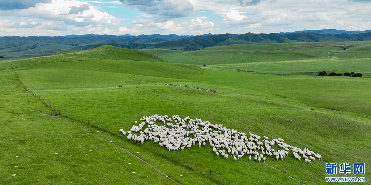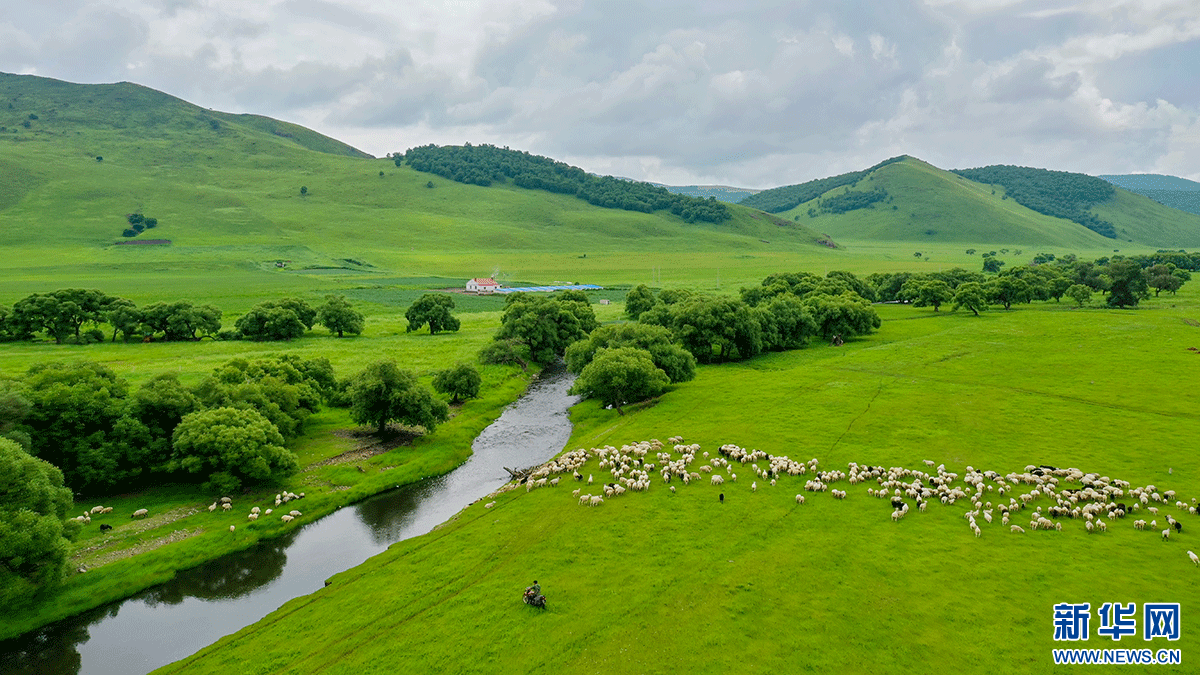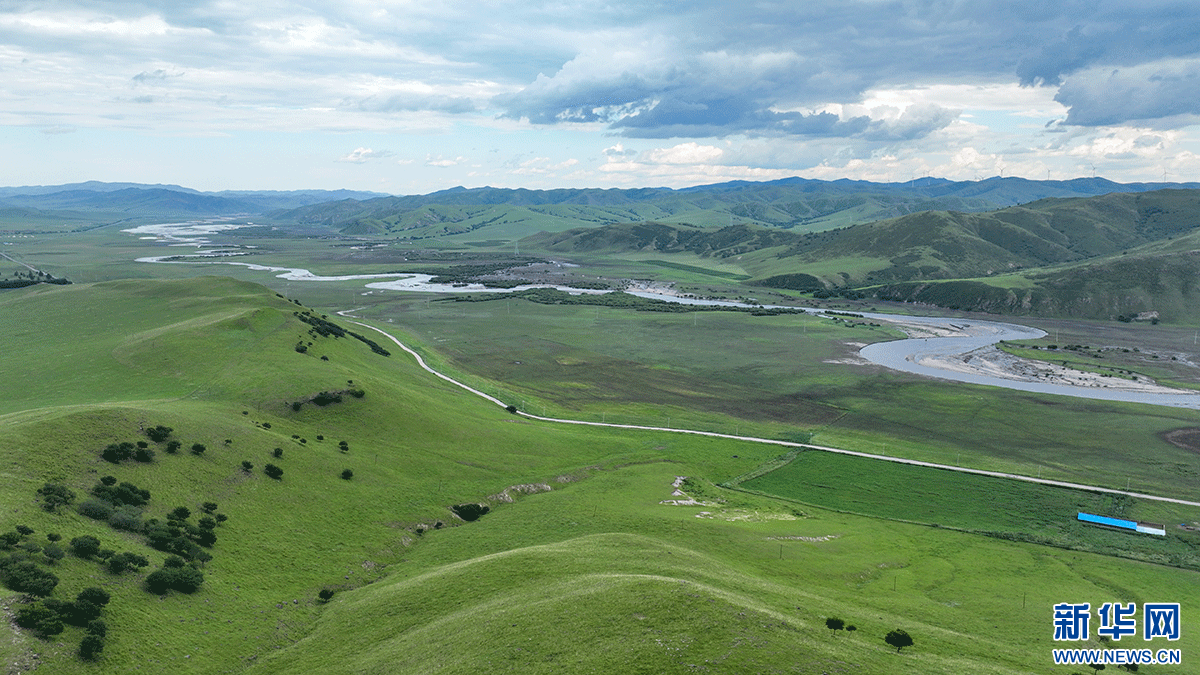 8月8日拍摄的乌兰毛都草原风光。新华网发 (赖志强 摄)无人机拍摄