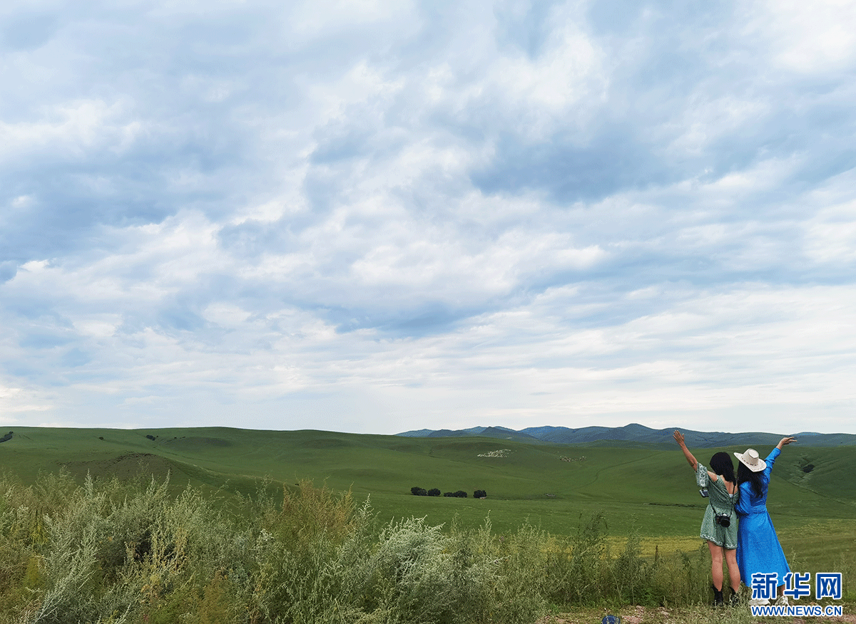 8月8日,游客在乌兰毛都草原拍照。新华网徐红梅 摄