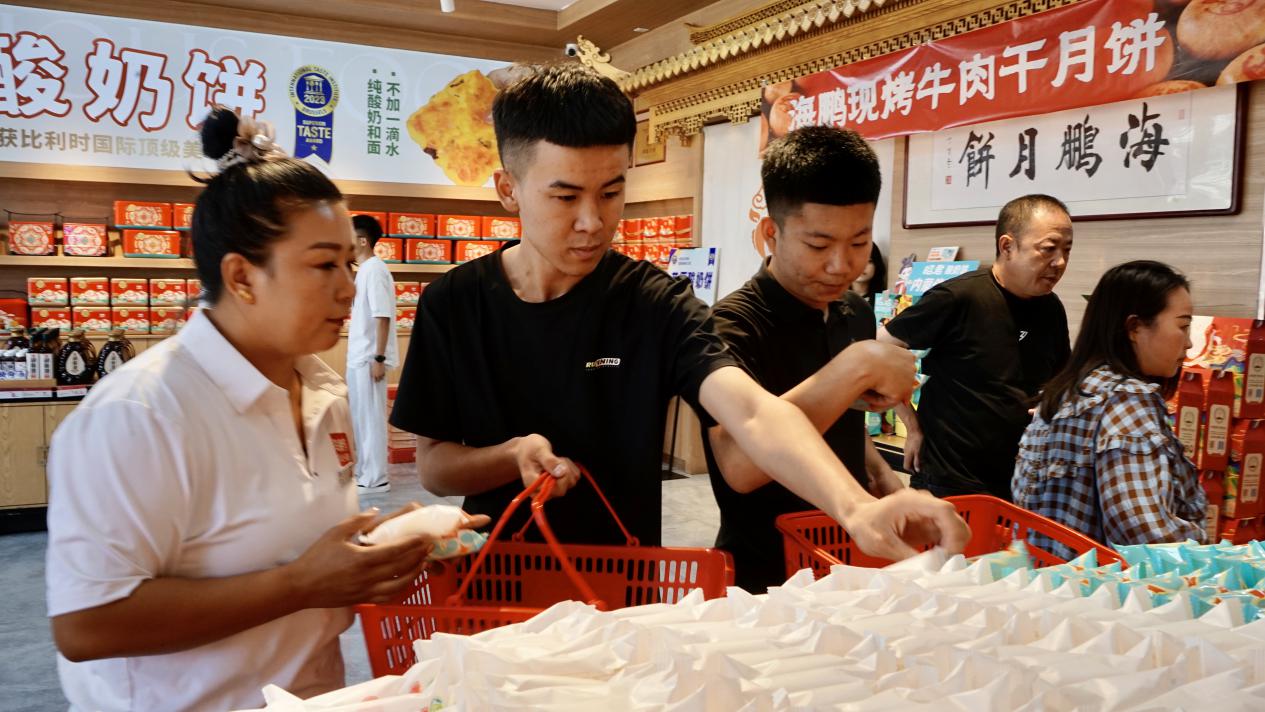前来购买月饼的顾客王金宝说道:“马上就要中秋节了,丰镇月饼是我们丰镇的特产,我过来给外地的亲戚朋友们买点,他们特别爱吃咱们的丰镇月饼。”