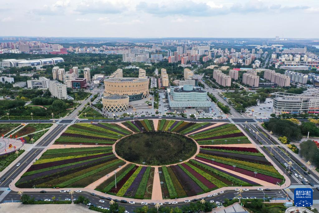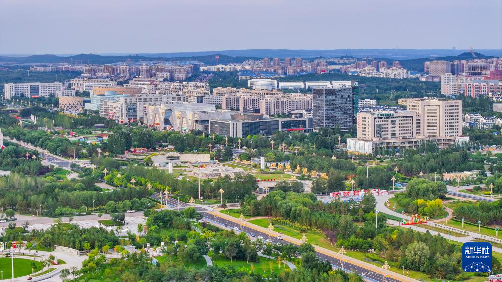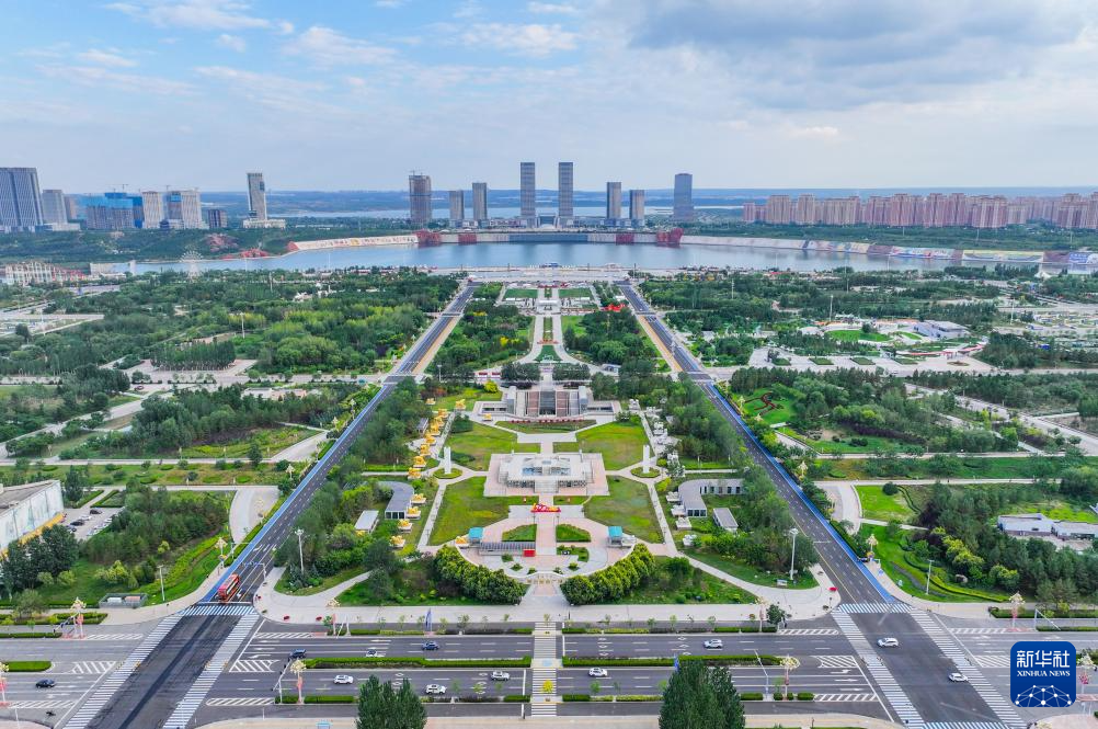 这是9月19日拍摄的康巴什区中轴线景观(无人机照片)。