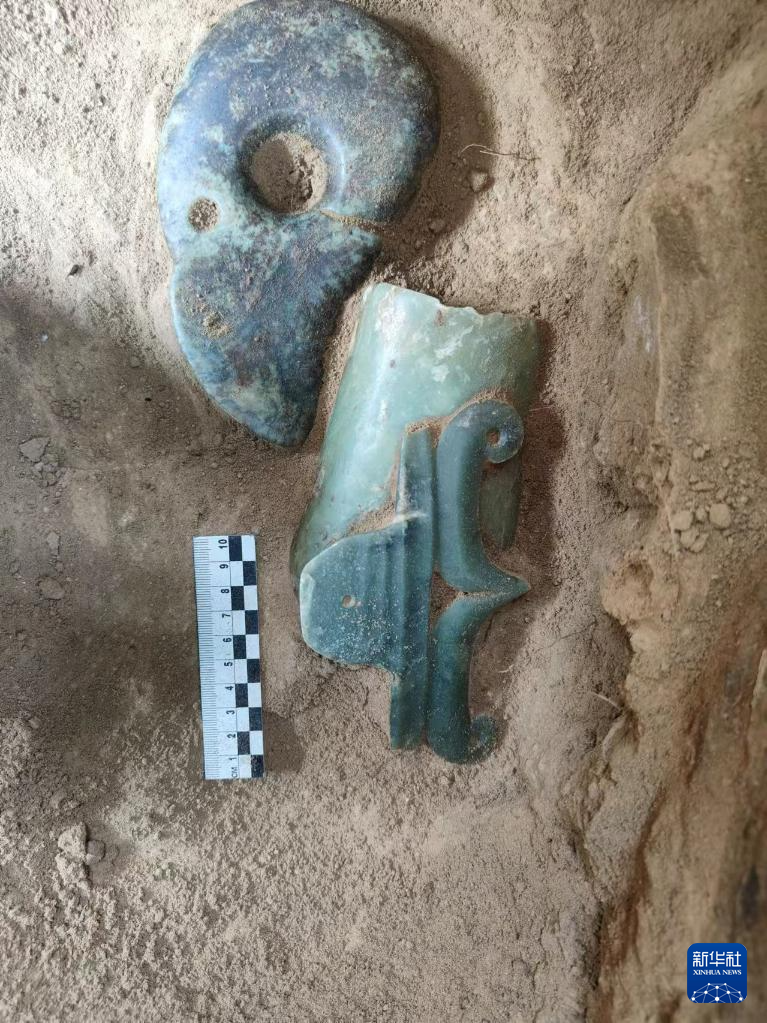 元宝山积石冢遗址随葬玉器出土现场(资料照片)。新华社发
