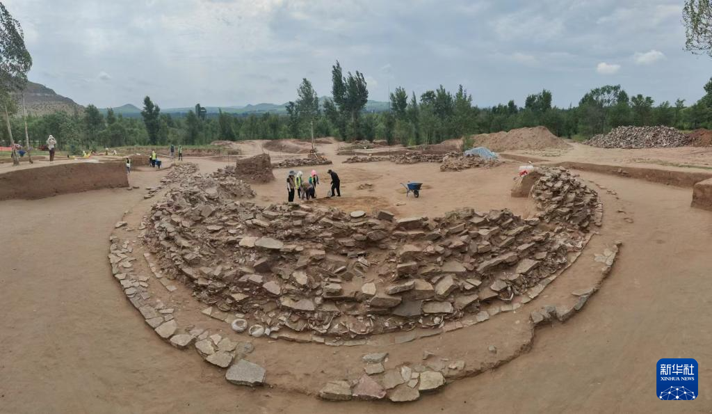 元宝山积石冢遗址发掘全景(资料照片)。新华社发
