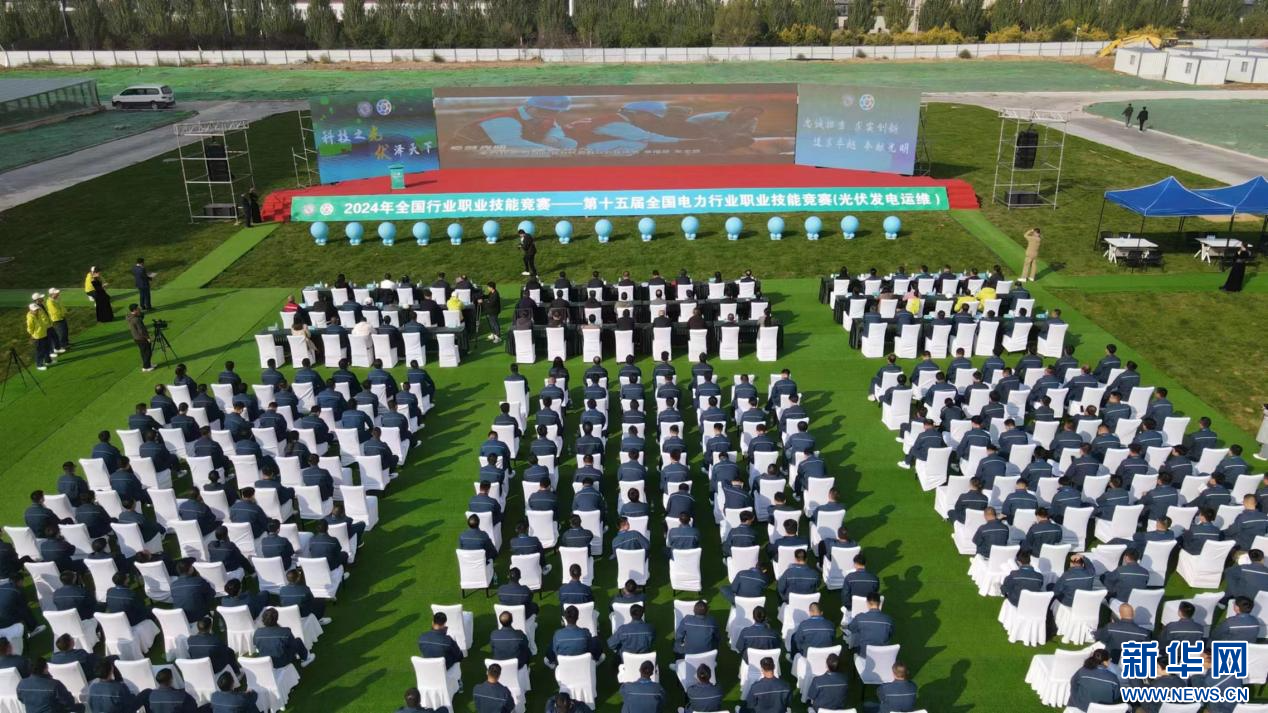 第十五届全国电力行业职业技能竞赛(光伏发电运维)开幕式现场。新华网发
