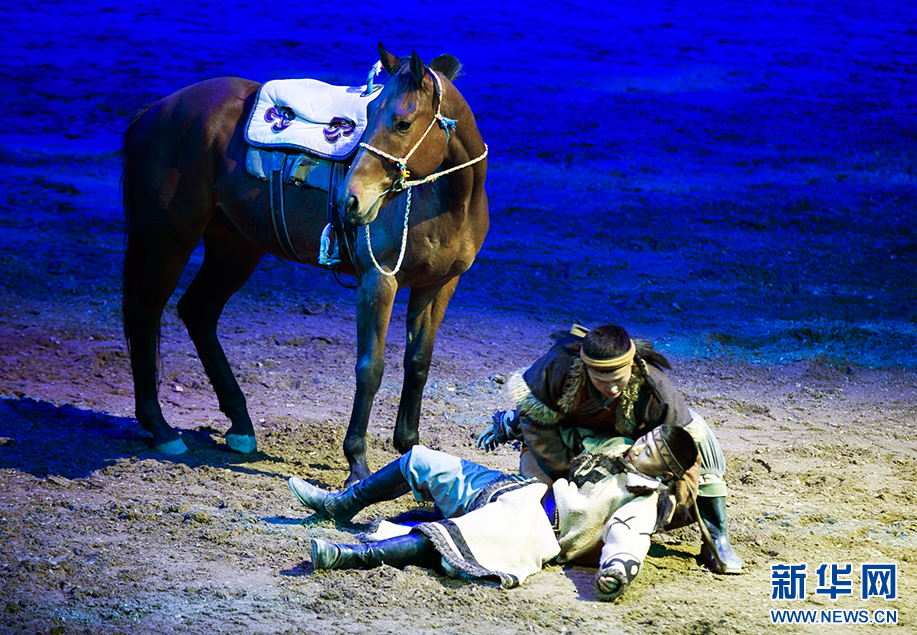 新华网呼和浩特9月26日电(石毅)千军散,战鼓息,受伤倒地的战马坚强地站立起来,将奄奄一息的战士驮回故园……舞台上的这一幕,戳中观众泪点,也赢得现场最热烈的掌声。