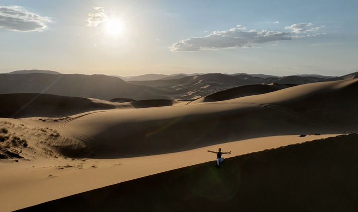 作为我国第三大沙漠、第二大流动沙漠,巴丹吉林沙漠有世界最高的固定沙山、最密集的沙漠湖泊、最广阔的鸣沙区域,风蚀地貌鬼斧神工,被中国国家地理杂志评为“中国最美沙漠”。