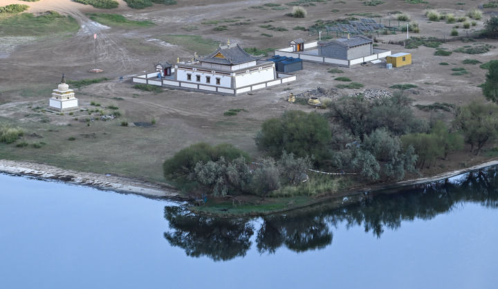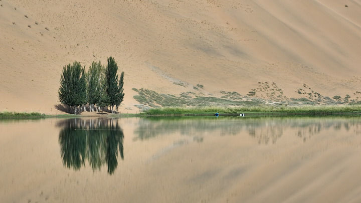 驱车深入巴丹吉林沙漠,翻过数不尽的沙丘,来到水草丰美的庙海子。这里四面环沙山,一座200多年前的白墙金顶寺庙坐落在湖边,为雄浑壮阔的自然景象抹上一笔浓厚人文气息。观者无不感叹,当年交通不便,如何在沙漠腹地建成如此精美的建筑。