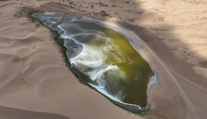 2024年7月31日拍摄的巴丹吉林沙漠中的南海子(无人机照片)。新华社记者 贝赫 摄
