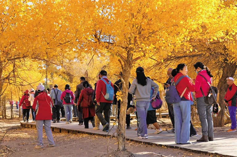 据统计,额济纳旗在国庆节期间共接待国内游客58.99万人次,同比增长3.74%;实现旅游综合收入29820.749万元,同比增长4.43%。如今,额济纳旗迎来错峰游的黄金时期,各景区出现客流高峰,仅10月11日,全旗接待游客达47334人。