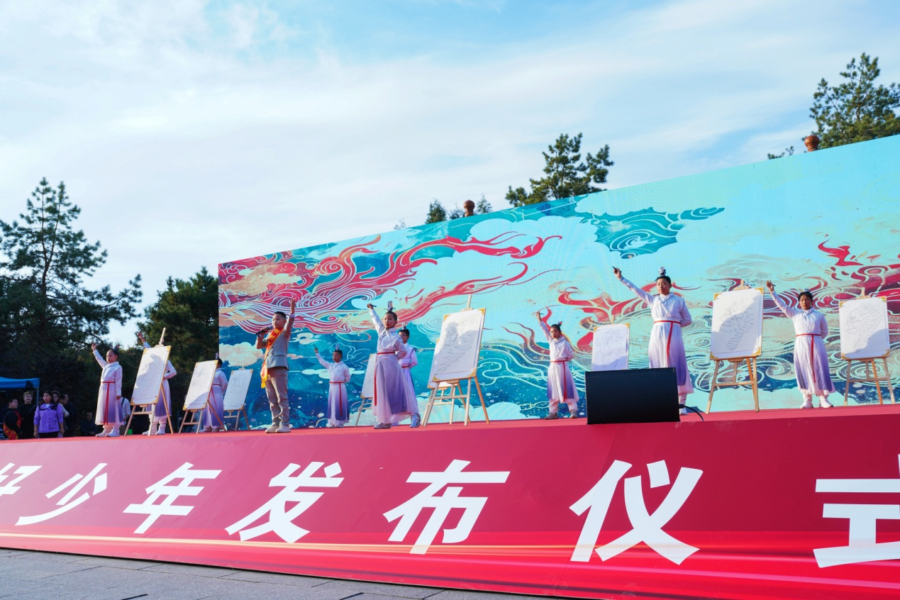 在发布仪式现场,往届“新时代好少年”代表臧大为受邀出席,并为荣获“童心向党”称号的新时代好少年颁发了荣誉证书。同时,他还携手晨旭艺校学子,共同演绎了其父亲臧金龙原创的舞台美术类节目《龙颜》,以此礼赞青城的新时代好少年。