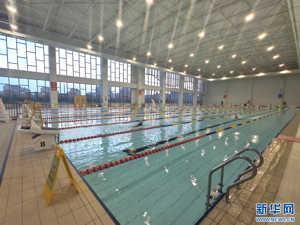 鄂托克旗全民健身中心免费对外开放,图为健身中心游泳池。新华网 杨腾格尔 摄
