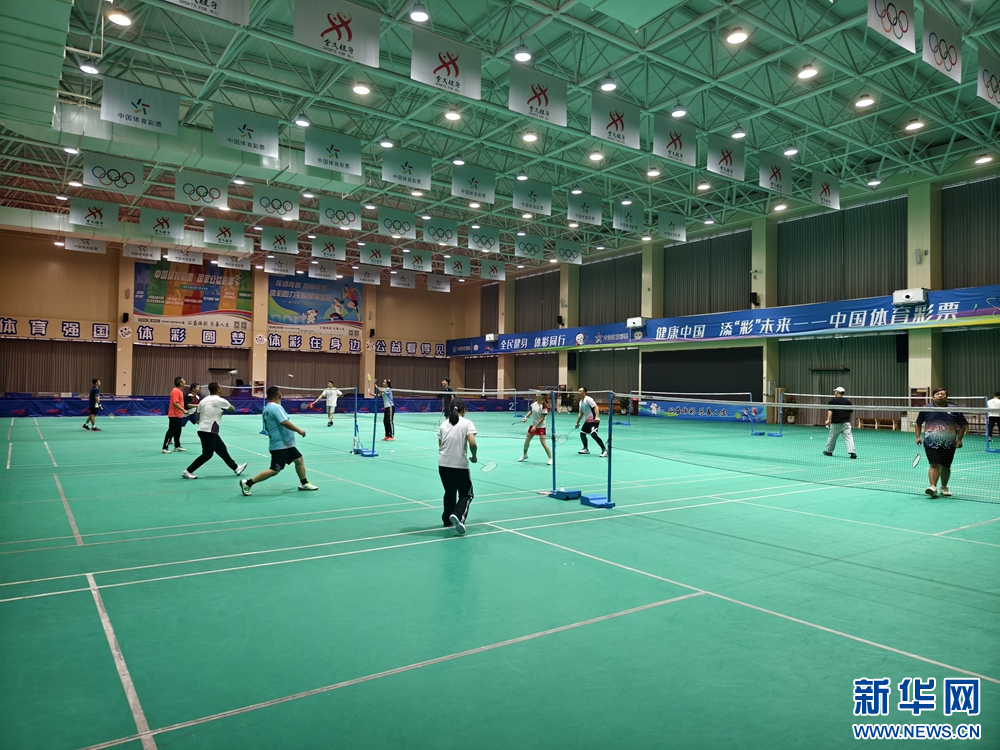 市民在鄂托克旗全民健身中心羽毛球馆锻炼。新华网 杨腾格尔 摄