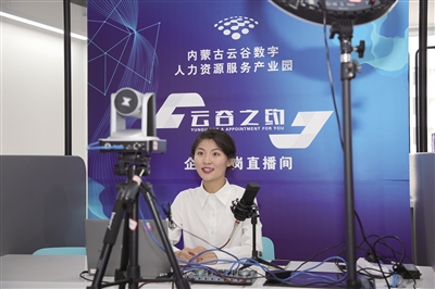 和林格尔新区内蒙古云谷数字人力资源服务产业园线上直播带岗区。