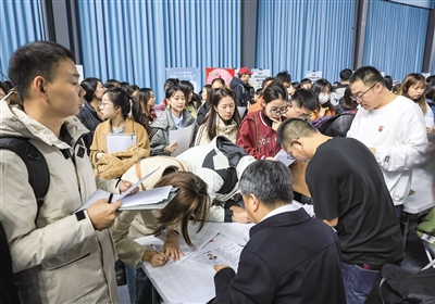 这样的招聘会在各高校随处可见。近年来,驻呼各高校紧盯毕业生就业情况,多措并举让毕业生们“足不出园”找到工作。各高校充分发挥校园招聘主渠道作用,通过举办线上线下、大型小型、不同行业类型、不同学科专业的校园招聘活动,搭建供需对接平台;借助信息化赋能,搭建“互联网+就业”一站式智慧就业平台,实现学生网上求职、简历投递、网上面试、网上签约等一站式服务;扩大政策宣传覆盖面,联系各大企业、有关部门进校宣讲,打通大学生就业服务“最后一公里”,加快推进高校毕业生在呼就业创业。